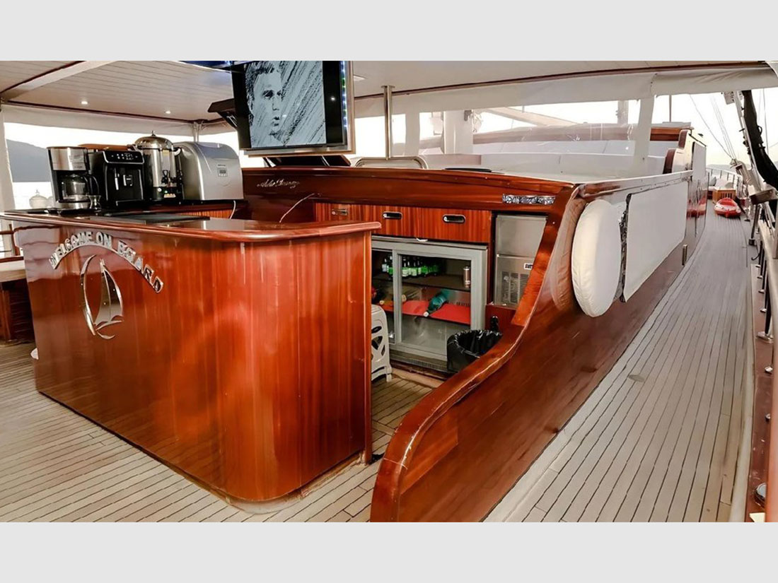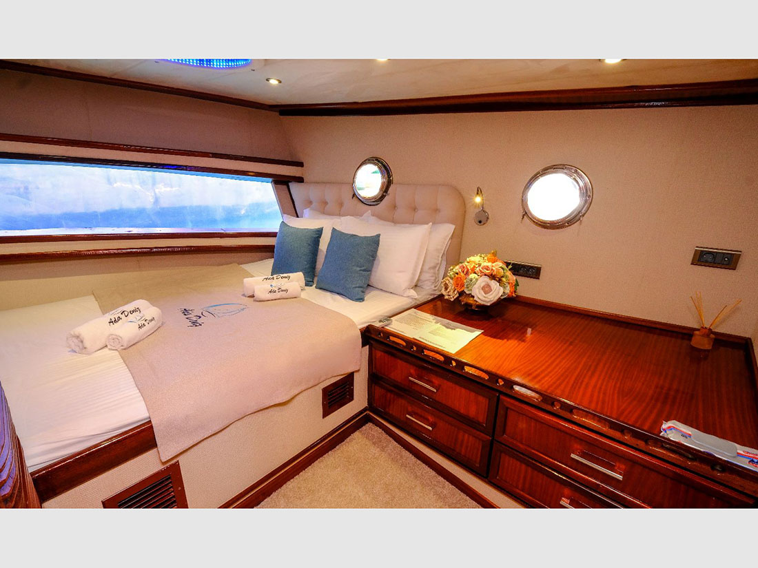 Duży luksusowy dwumasztowy 34 metrowy jacht, pozwala na stabilne żeglowanie, wyposażony w przestronne kabiny z łazienkami i klimatyzacją, miejsca do odpoczynku na pokładzie, na dziobie sofy do wypoczynku, miejsce do wieczornych biesiad na śródokręciu oraz na rufie strefa odpoczynku. Posiada ogromną mesę wewnętrzną i zewnętrzną. Na jachcie jest 8 kabin dwuosobowych, każda z klimatyzacją oraz przestronną łazienką, 2 kabiny Master, 4 duże kabiny z podwójnym łózkiem oraz 2 duże kabiny z dwoma odzielnymi łóżkami. - wybór dla każdego.